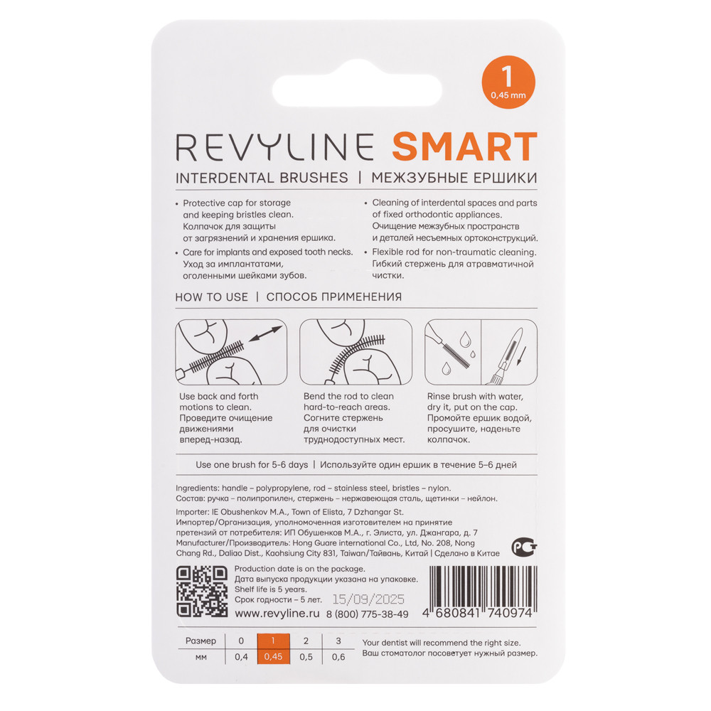 Ершики межзубные Revyline Smart, размер 1 (0,45 мм) оранжевые, 6 шт.