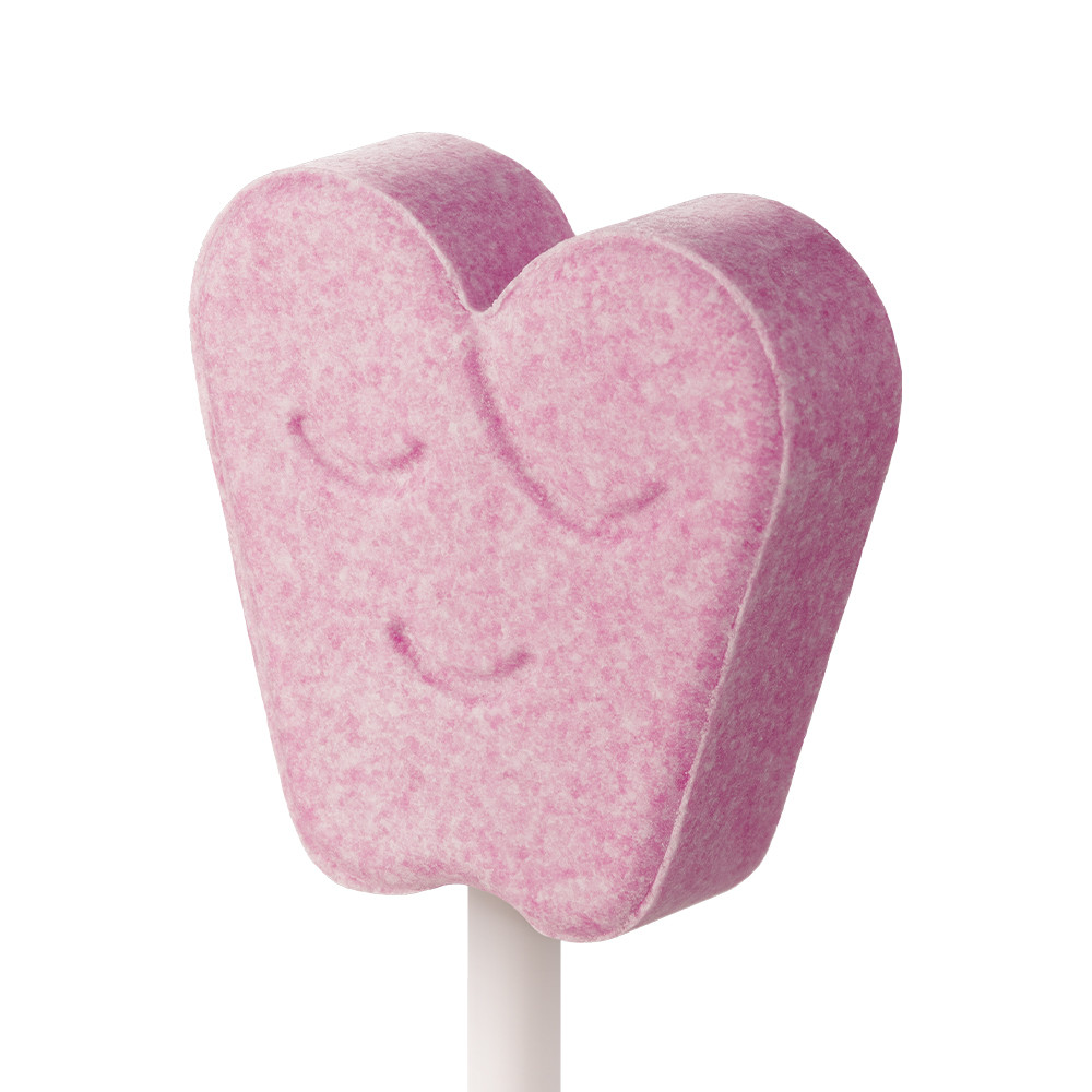 Ксилит, изомальт, гуммиарабик, ароматизатор, порошок клубники, регулятор кислотности (яблочная кислота), стеарат магния, краситель (красный свекольный).
