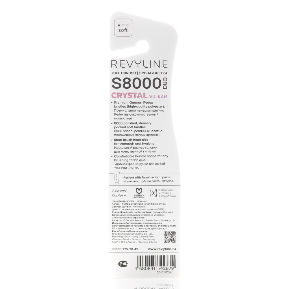 Набор зубных щеток Revyline S8000 Duo Crystal – это стиль и эффективность в каждой детали.