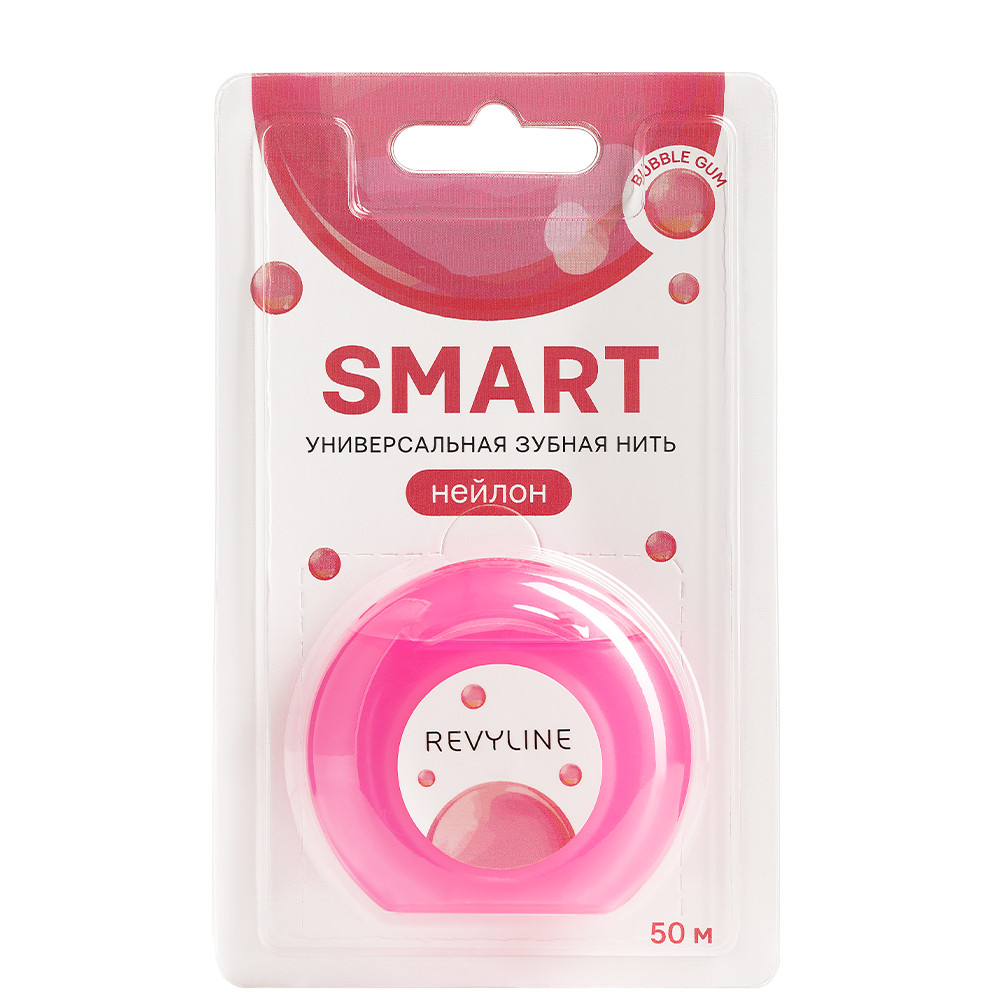 Revyline зубная нить вощеная, нейлон, Smart Bubble Gum, 50 м, розовая